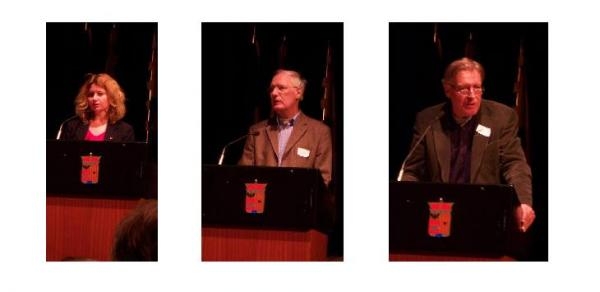 v.l.n.r. Leida Rijnhout, VODO; Lou Keune, Vóór de Verandering/Platform Duurzame en Solidaire Economie en Wolfgang Sachs, Wuppertal Institute.